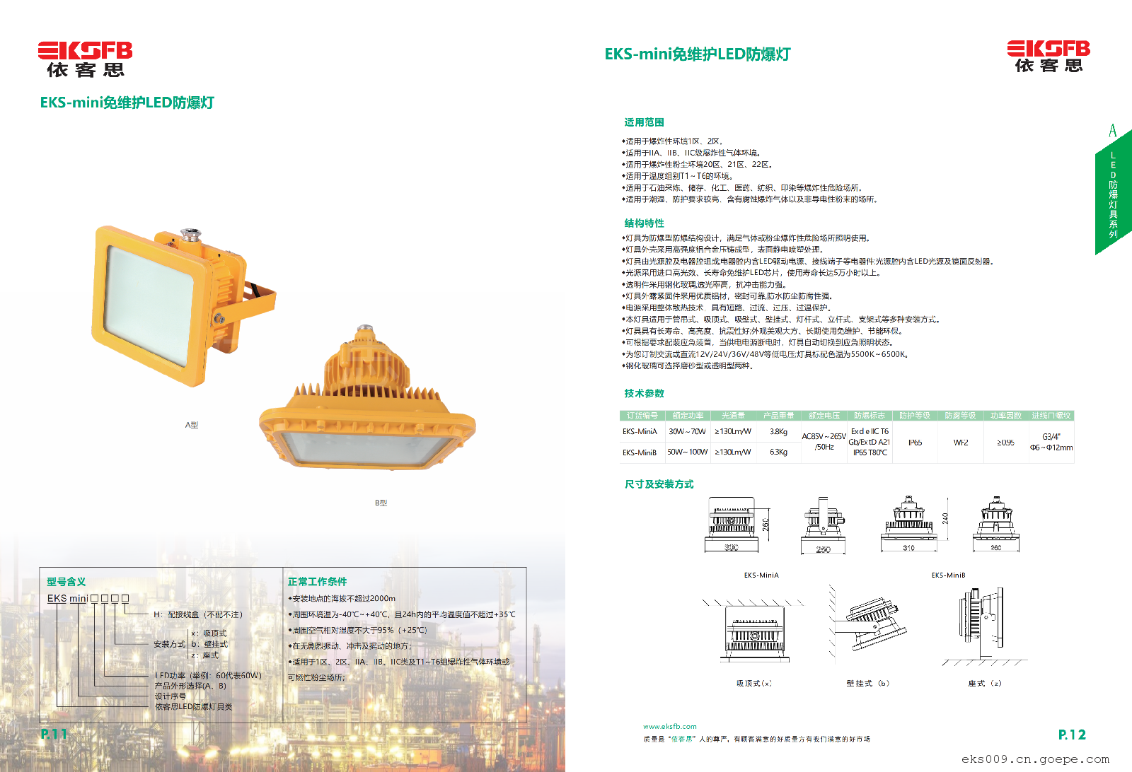 - 依客思LED防爆灯50W100W150W200W 化工厂车间应急照明灯防爆投光灯路灯EKS97